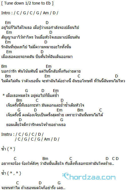 คอร์ดเพลง หมดใจ - วง Zoom (คอร์ด ง่ายๆ)